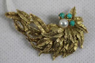 0050-Diamant Saphir Brosche Blumenkorb 750 Gold um 1900