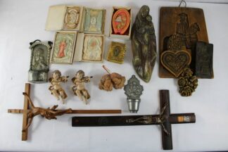 0593-Religiöses Konvolut Bauernsilber Stuck Figuren etc. 4 St.