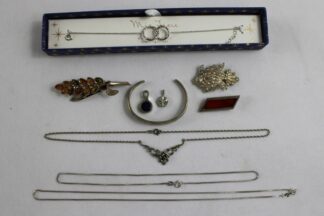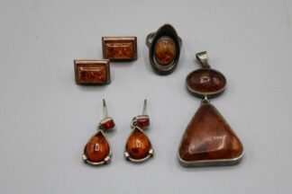 0111-Silberschmuck Konvolut überwiegend Bernstein
