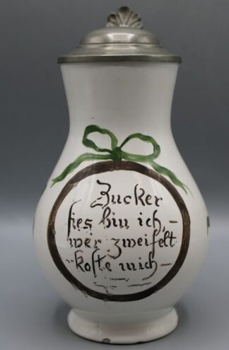 0528-Fayence Walzenkrug mit Spruch um 1800
