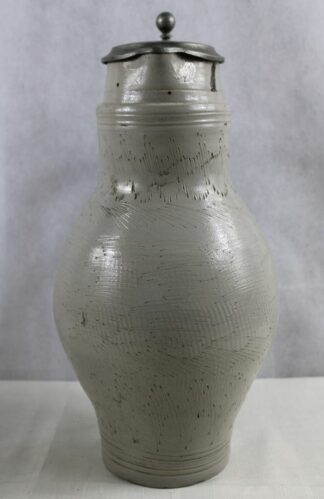 0544-Mostkrug 3 L mit Ritzdekor und Zinndeckel um 1900