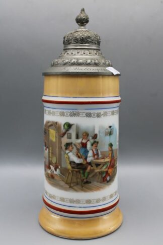 0550-Porzellan Bierkrug 1/2 L Bauernstubenszene um 1900