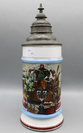 0551-Porzellan Bierkrug 1/2 L Hoch Germania Hoch Bavaria Patriotika WK I.