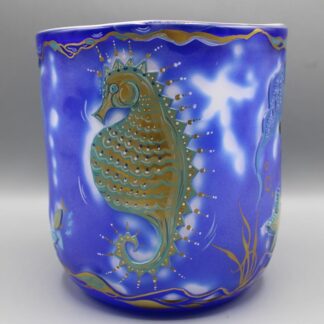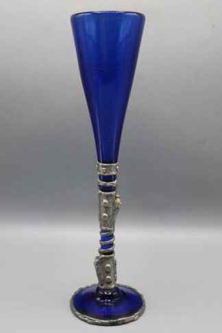 0547-Champagner Flöte blaues Glas mit Zinnmontur