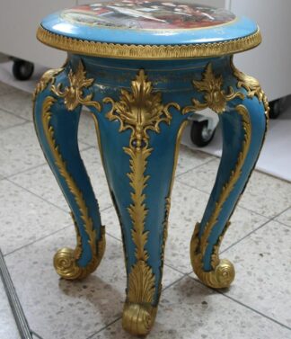 0661-Prunkvoller Hocker handbemalt mit Rokoko Musikstunde 20 Jh.