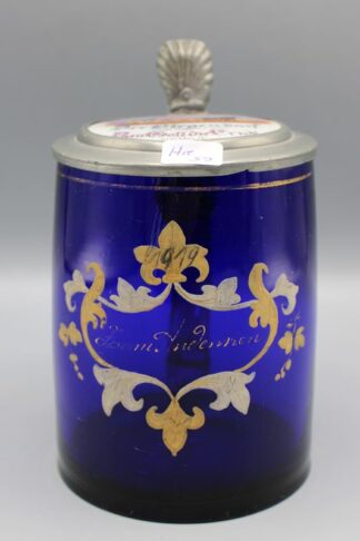 0735-Glaswalzenkrug mit Zinndeckel Oeconomie kobaltlblau Bay. W. 19 Jh.