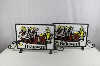 0892-Brauerei Bräuwastl schmiedeeiserne Werbeschilder 2 St. 20 Jh.