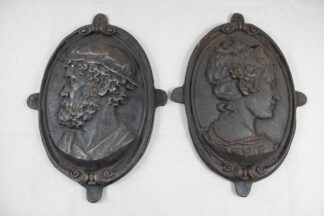 0965-Paar gusseiserne Wandreliefs Porträts