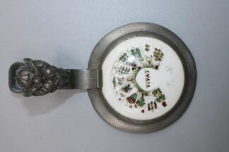 0229-Zinndeckel mit Porzellaneinsatz Tarok Spielkarten um 1900 (selten)