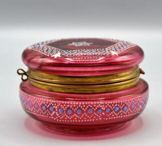 0822-Döschen rubinrotes Glas weiß blau emailliert um 1900