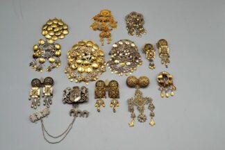 0048-Broschen filigran Silberdraht vergoldet Trachtenschmuck überw. Silber ca. 49 St.