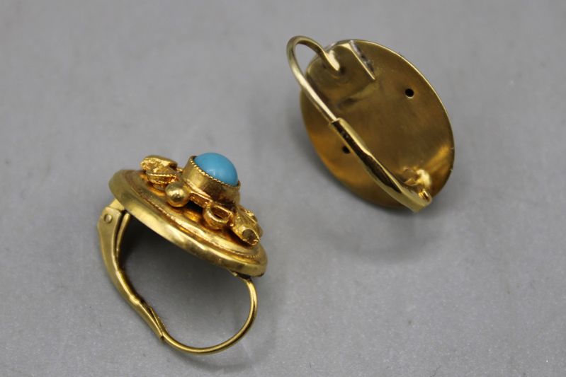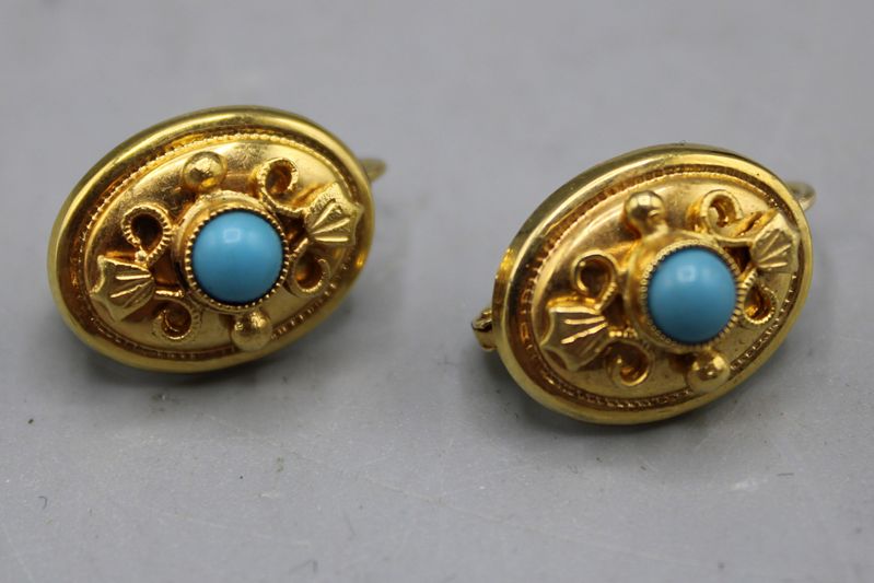0003-Ohrringe 585 Gold mit kleinen Türkisen 19 Jh.