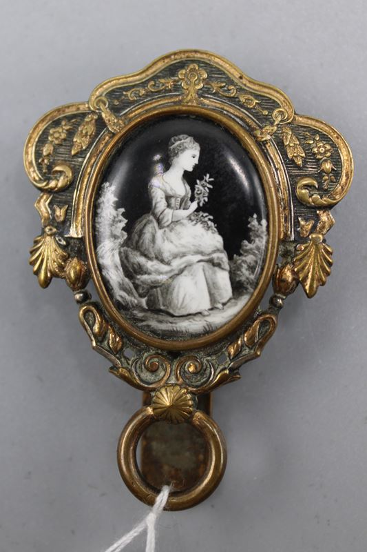 Beschließerring Rockstecker feine Emailplakette 19 Jh.