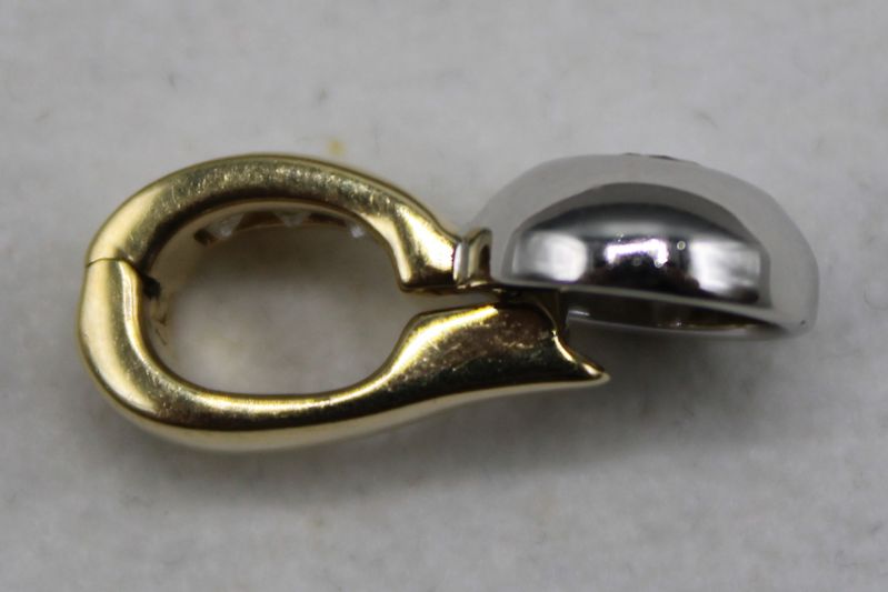 1 Brillant ca. 0,2 ct., an der klappbaren Öse 3 kleine Diamanten im Quadratschliff, ca. 19,3 x 9,2 mm, 3,2 g