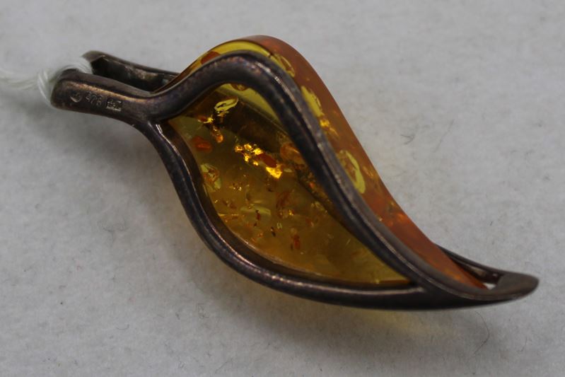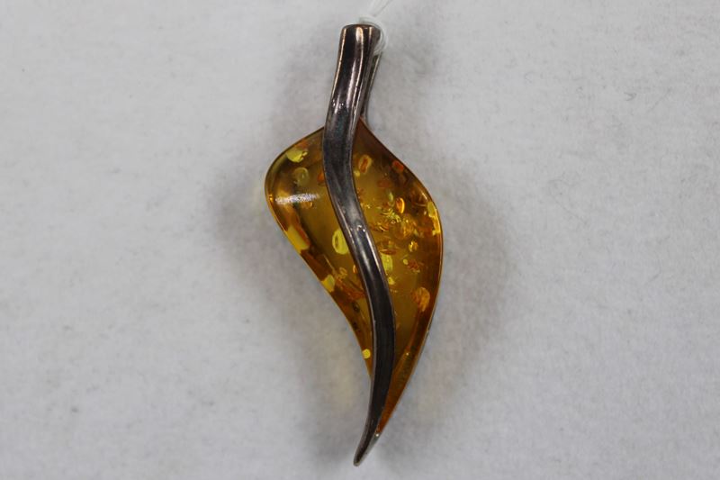 0012-Bernstein Anhänger Silber 925 Gdansk Polen 2. H. 20 Jh.