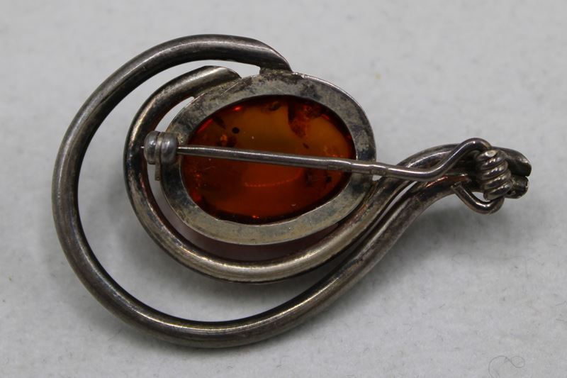 Bernstein Brosche Silber 925 Gdansk Polen 2. H. 20 Jh.
