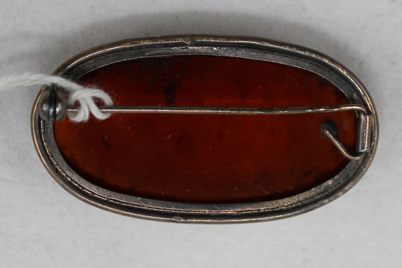 0017-Bernstein Brosche Silber 925 Polen 20 Jh.