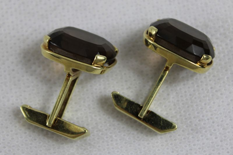 0019-Rauchquarz Manschettenknöpfe 585 Gold