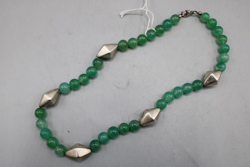 0023-Chrysopras Perlenkette mit 925 Silberelementen