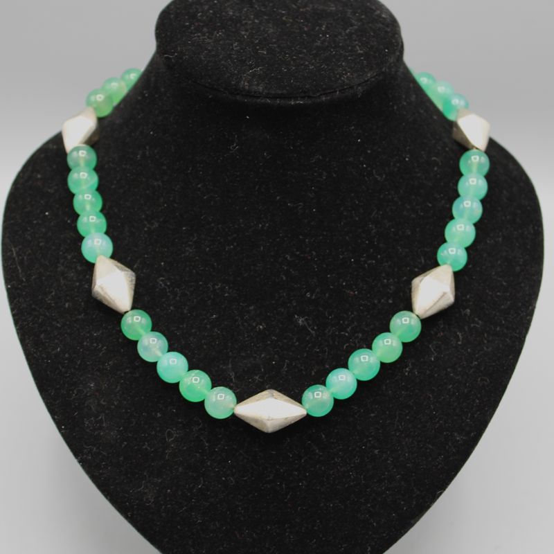 Chrysopras Perlenkette mit 925 Silberelementen