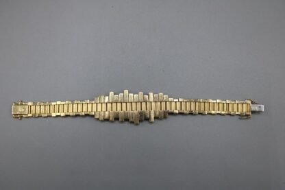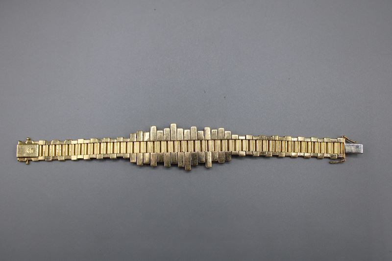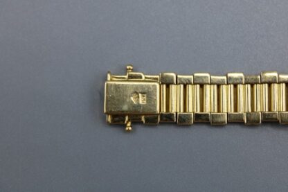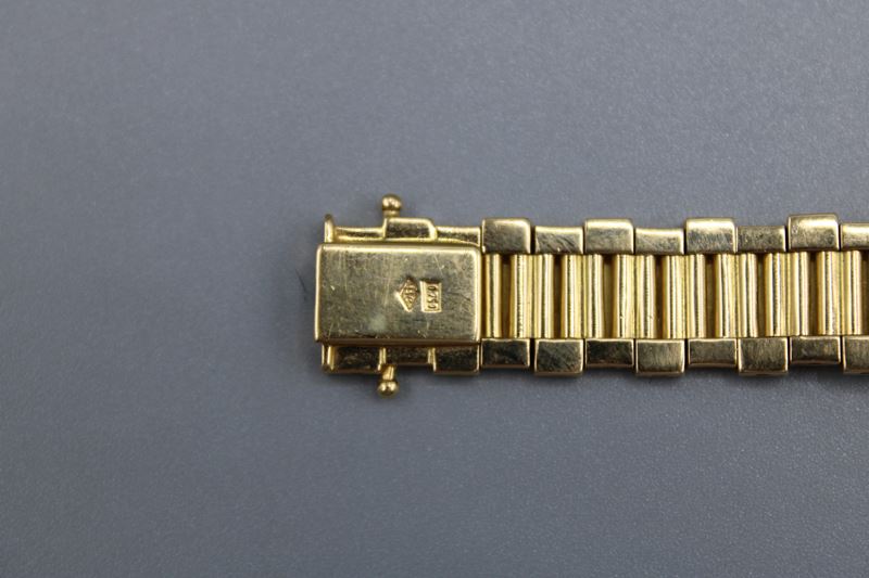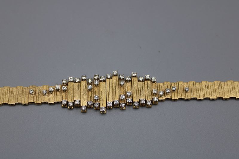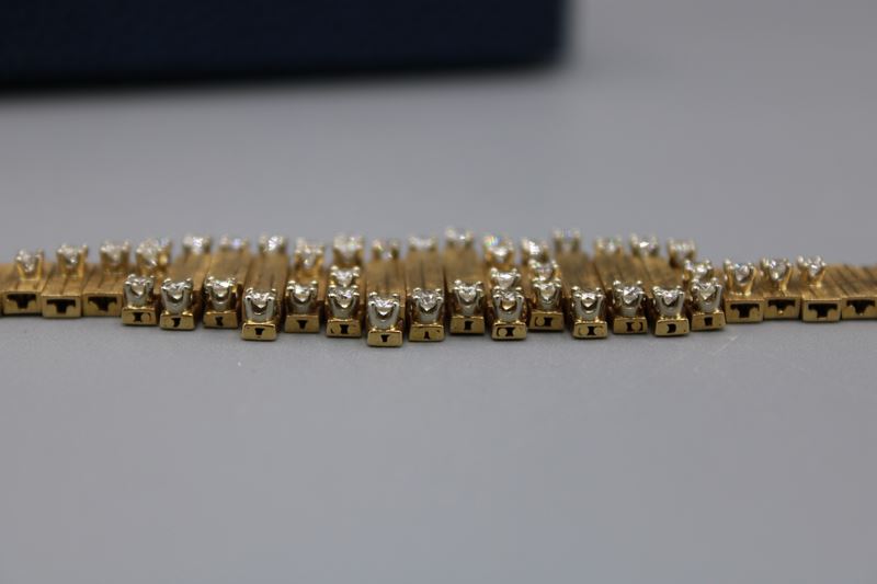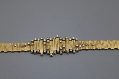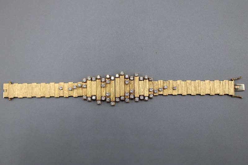 46 Brillanten zus. ca. 3,7 ct., Länge ca. 18,3 cm, Breite mittig ca. 2,2 cm außen ca. 1,1 cm, 66,8 g