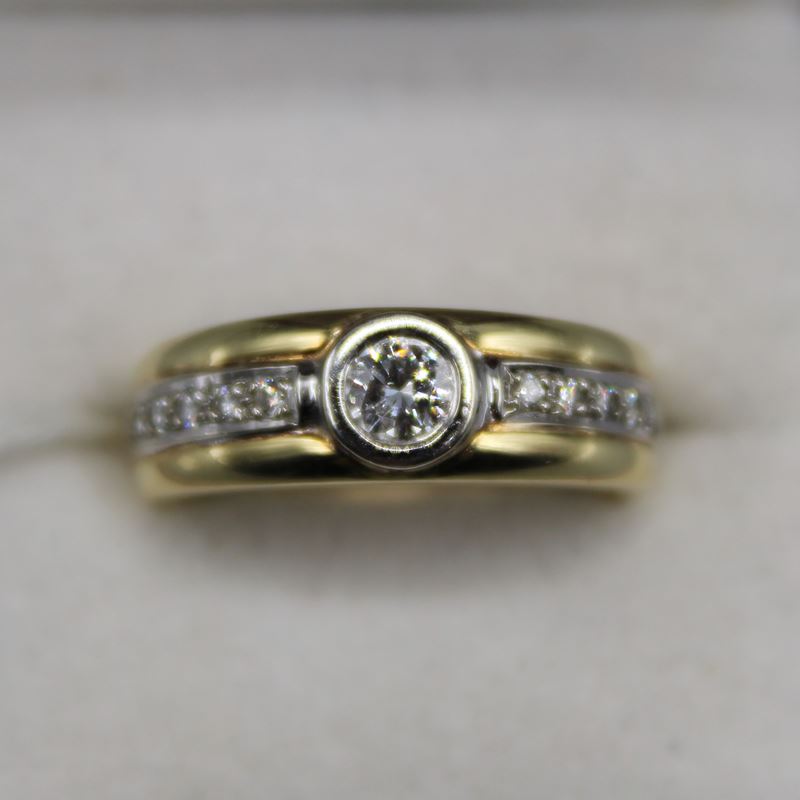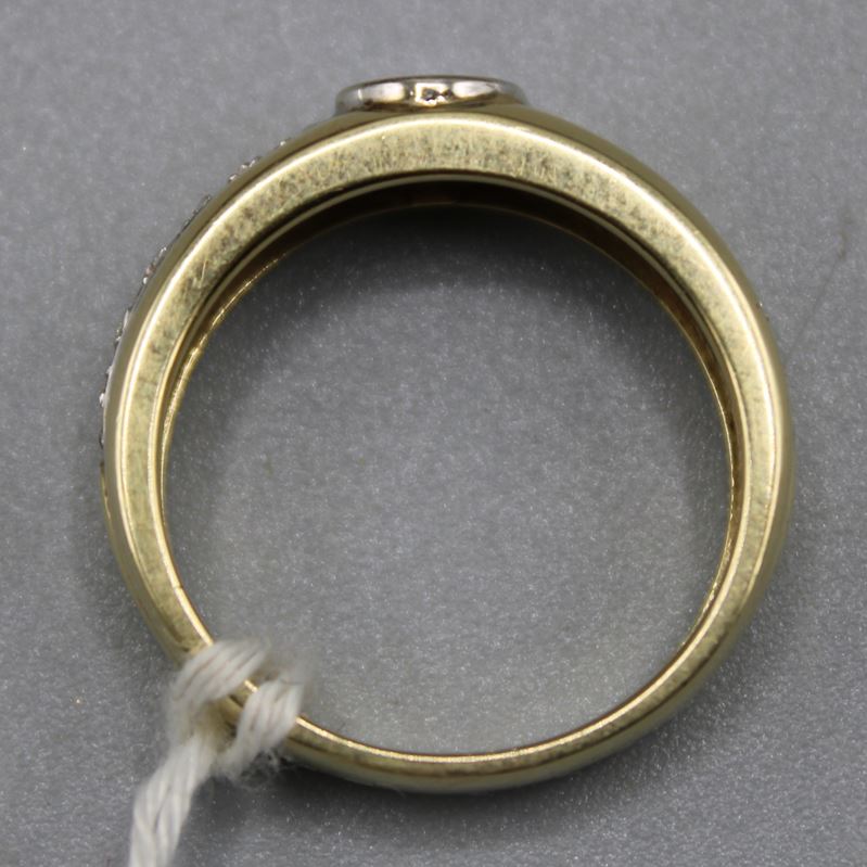 mit 13 Brillanten zus. ca. 0,45 ct. (darunter ein großer Brillant mittig ca. 0,25 ct.), Ø 18 mm, 6,5 g