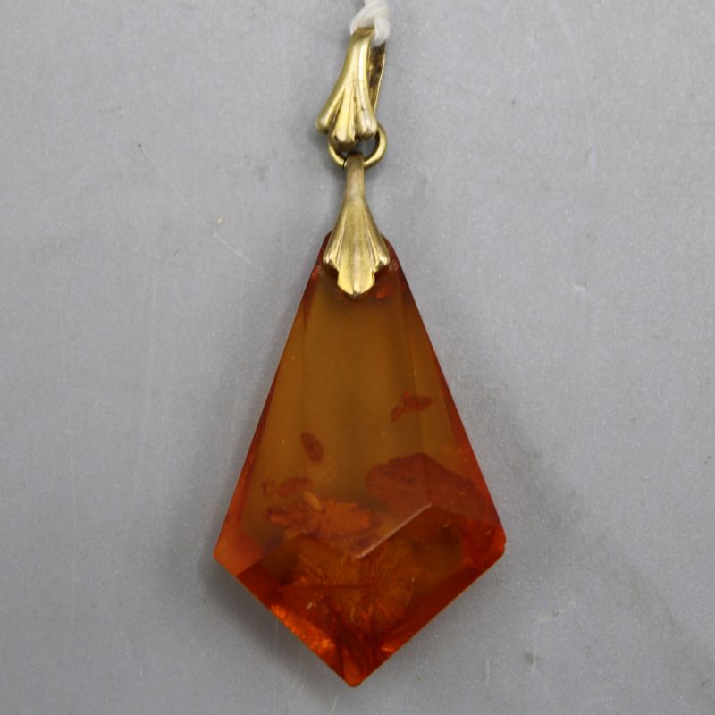 0037-Bernstein Anhänger Fassung 333 Gold