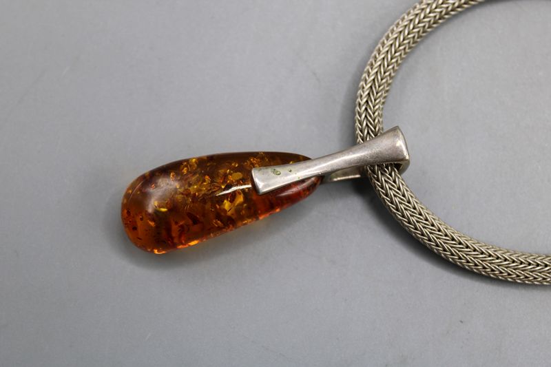 Fuchsschwanzkette Silber 925 mit Bernstein Anhänger