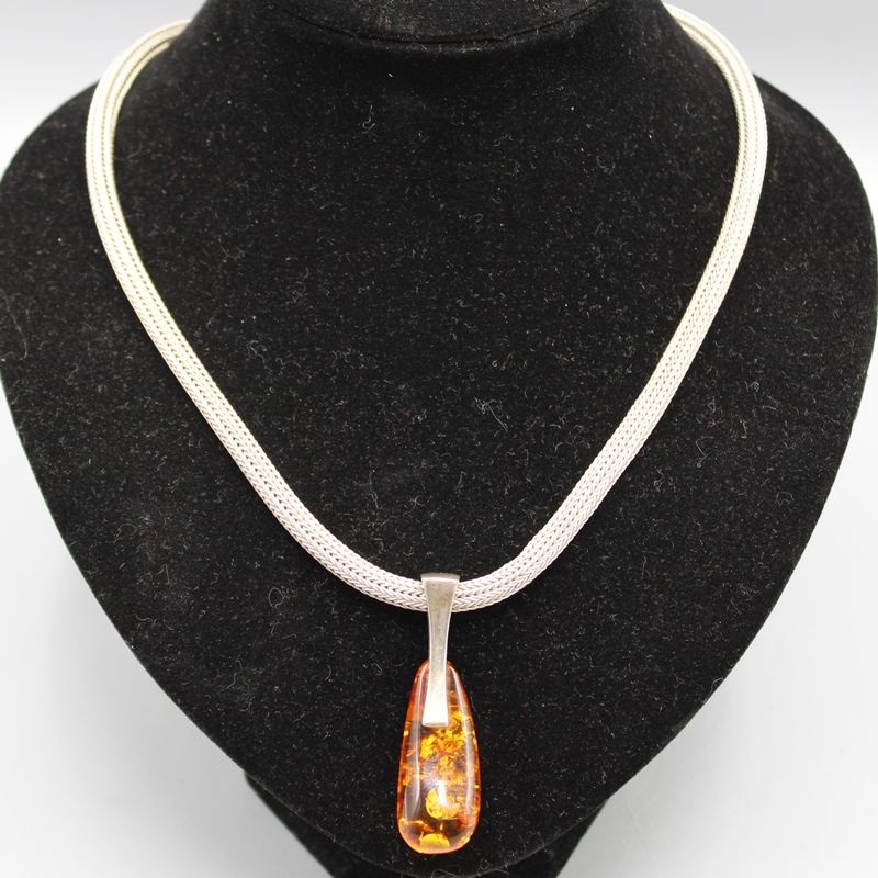 Kette ca. 49 cm Stärke ca. 5,7 mm 45,7 g, Bernstein Anhänger mit 925 Silbermontierung ca. 5,5 cm 11 g