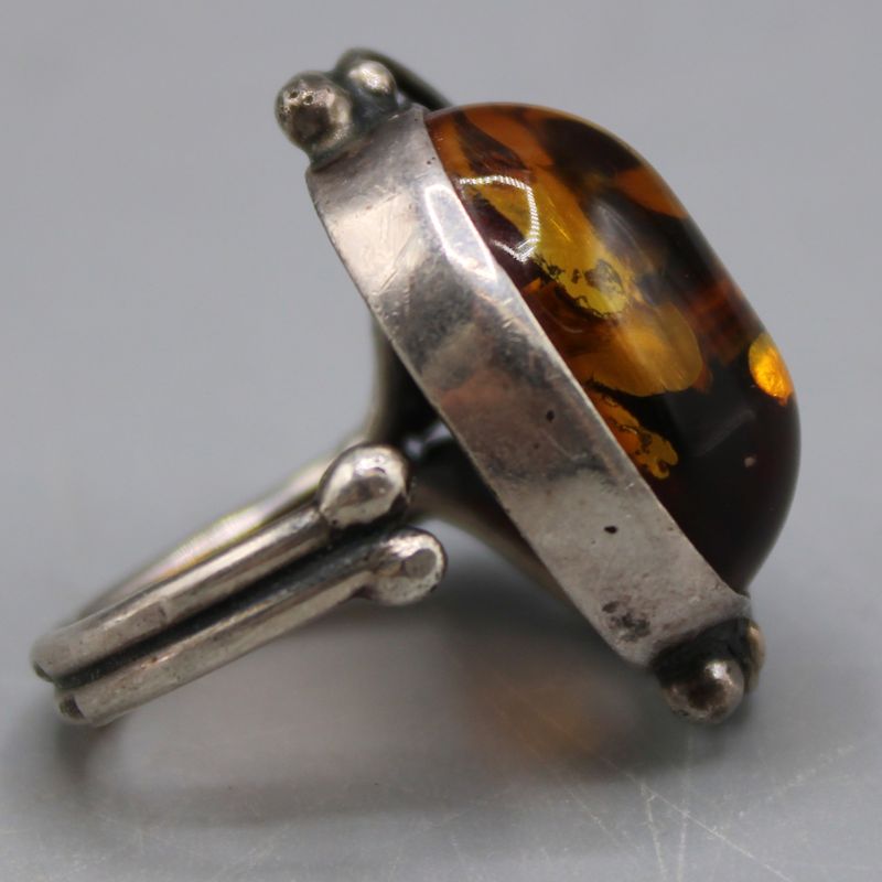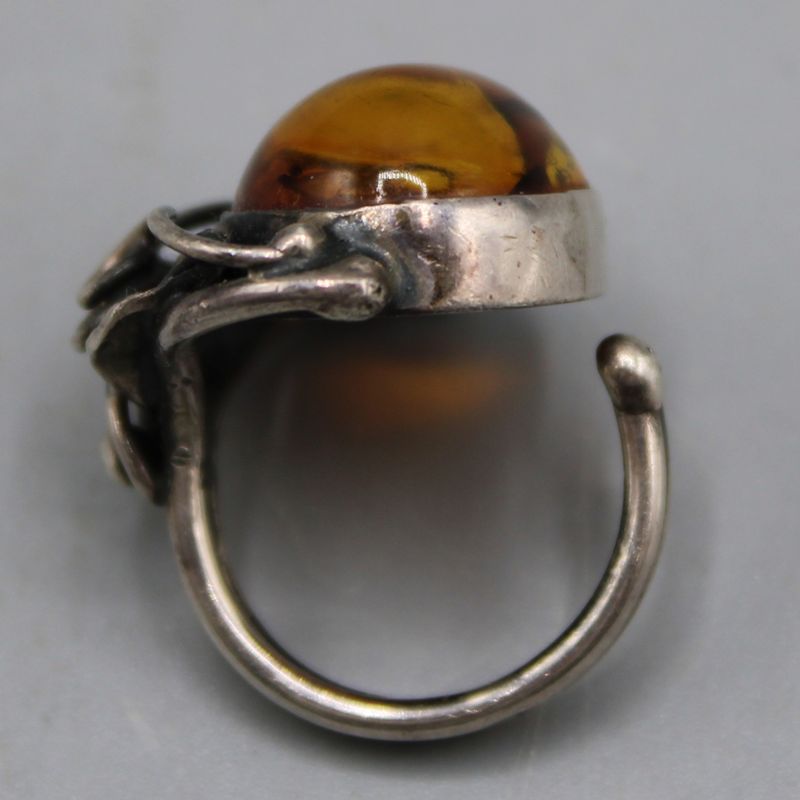 Bernstein Ring Silber 925 Polen Danzig 2. H. 20 Jh.