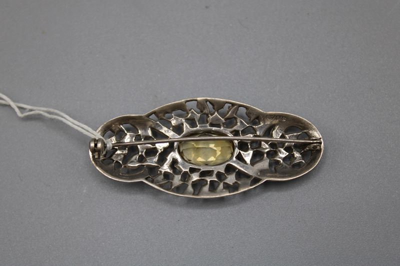 0040-Brosche 835 Silber mit Citrin und Markasiten