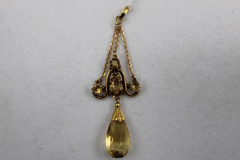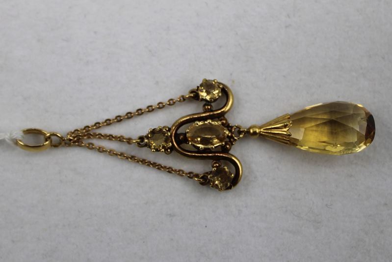 ca. 6 x 2 cm, unten mit beweglich abgehängten Citrin in Tropfenform, 4,5 g