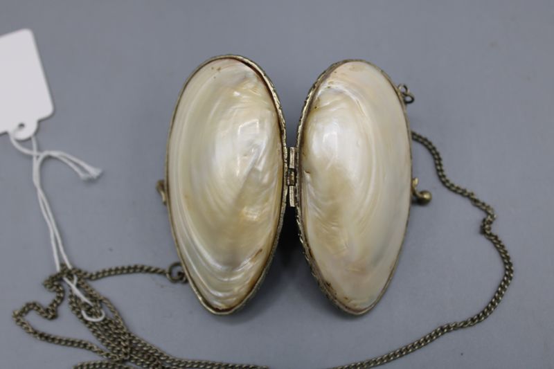 0054-Perlmutt Döschen mit Kette zum Umhängen 1. H. 20 Jh.