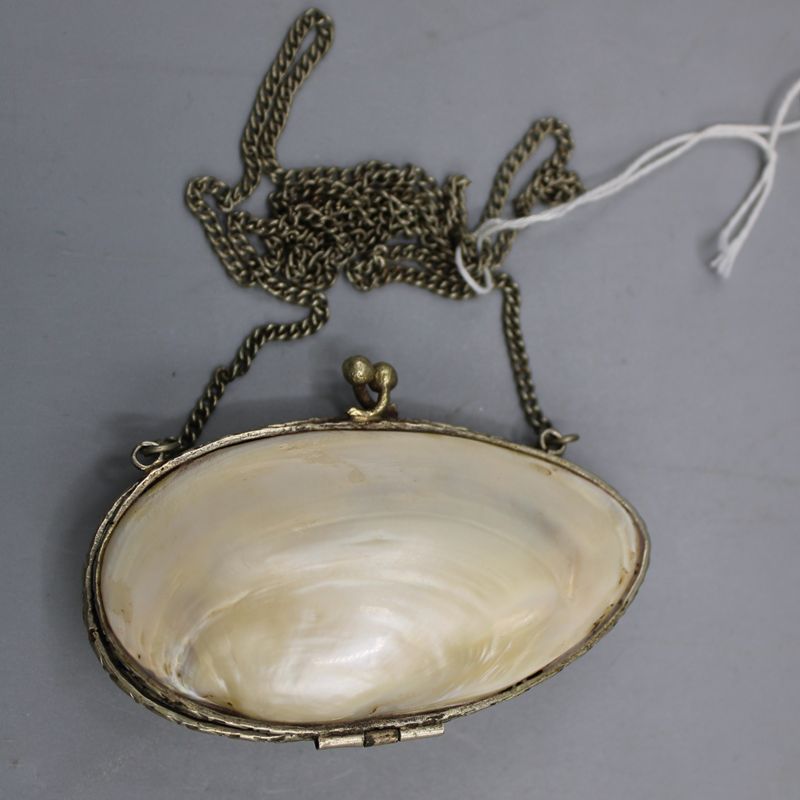 Perlmutt Döschen mit Kette zum Umhängen 1. H. 20 Jh.
