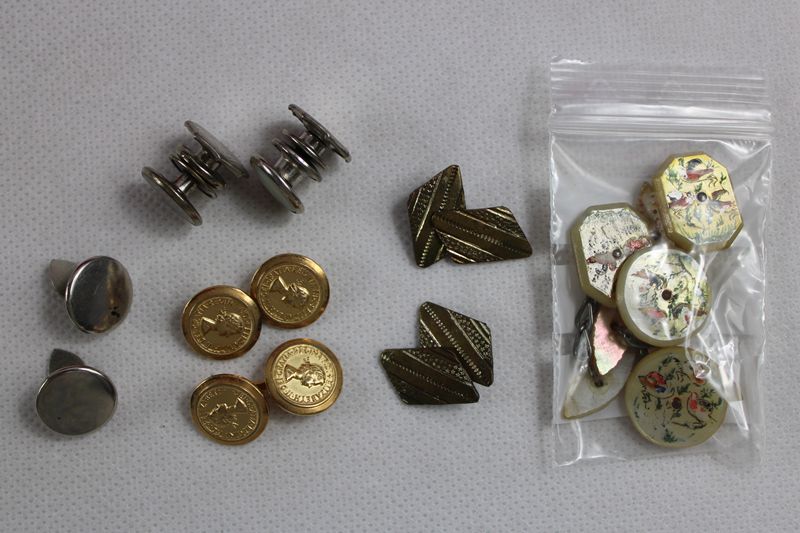 darunter 2 Paar handbemalte Perlmutt Manschettenknöpfe (Bemalung tlw. berieben)