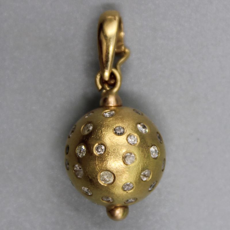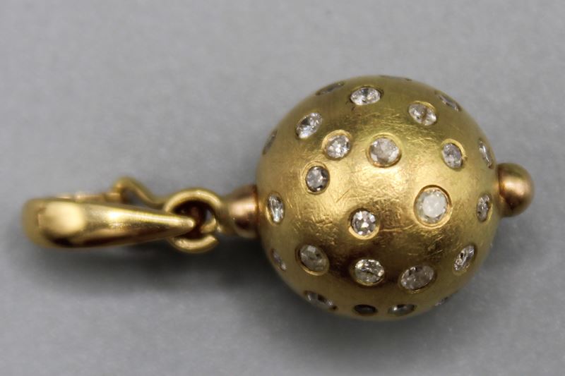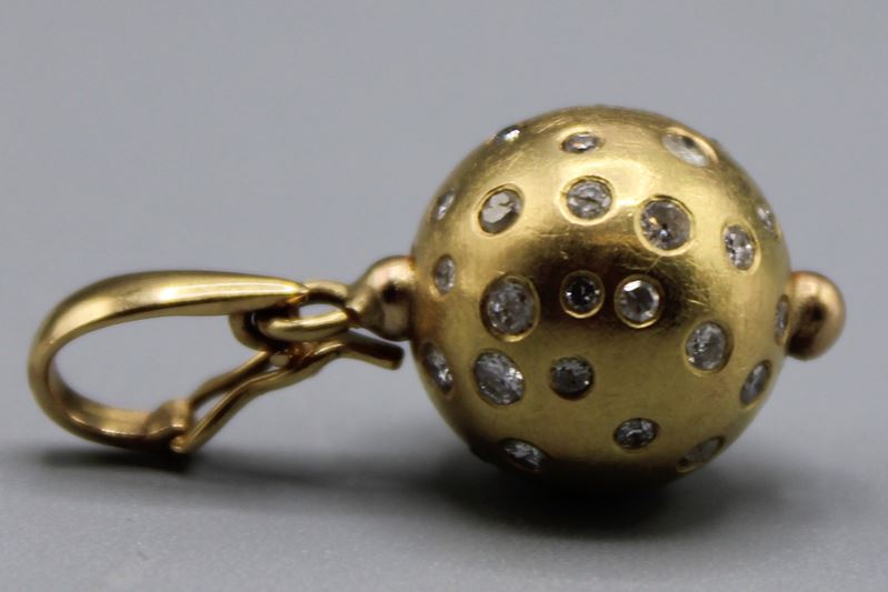 Gold Kugel 750 mit kleinen Diamanten besetzt, Ø 13,9 mm, 8 g, Klappöse