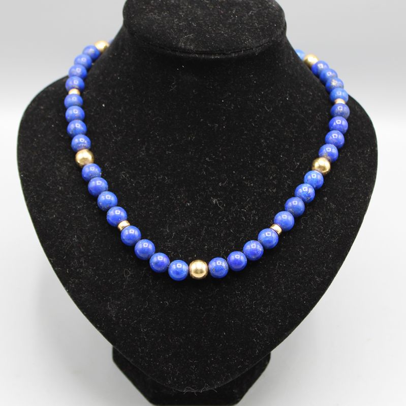 Lapislazuli Kette mit 585 Goldperlen