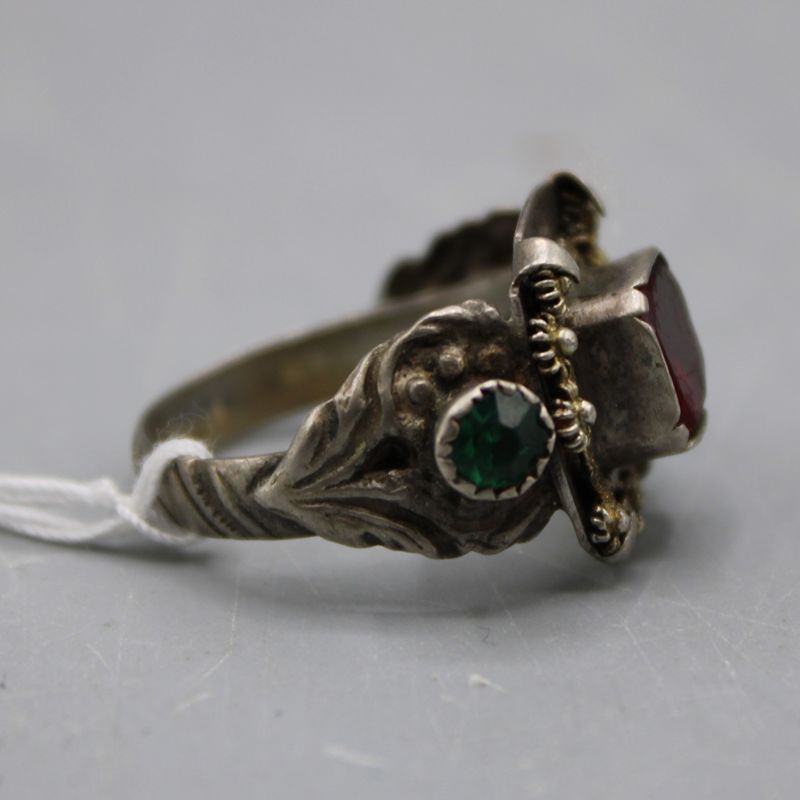 Bauernring Silber Glassteine süddeutsch 19 Jh.