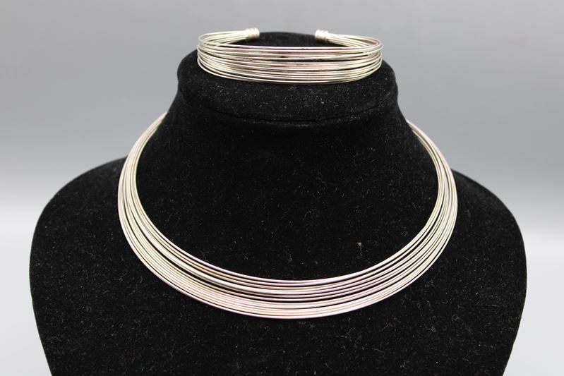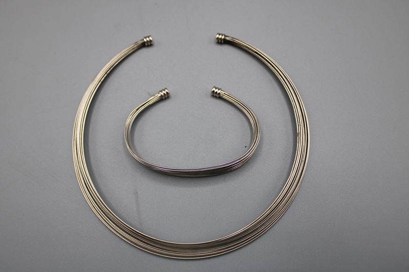FBM Schmuckset 925 Silber Armreif u. Halsreif, zus. 45,9 g