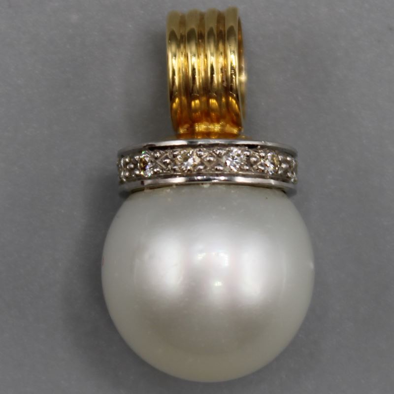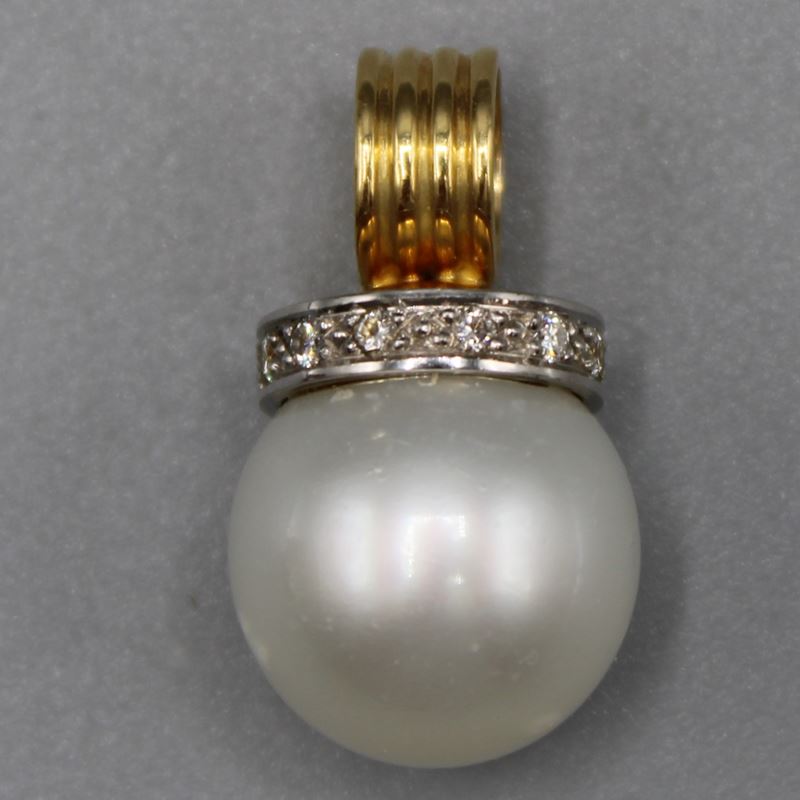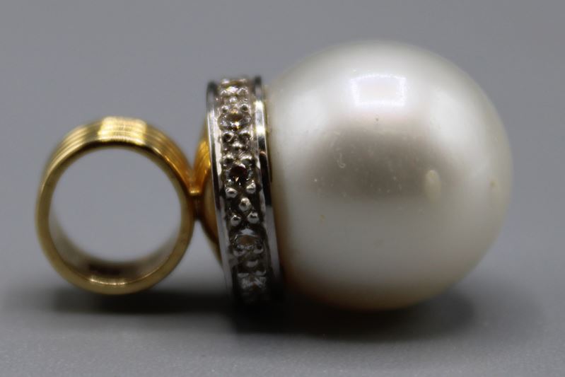 Perlen Ø 14,4 mm, 750 Gold Fassung mit kleinen Diamanten besetzt, 7,7 g