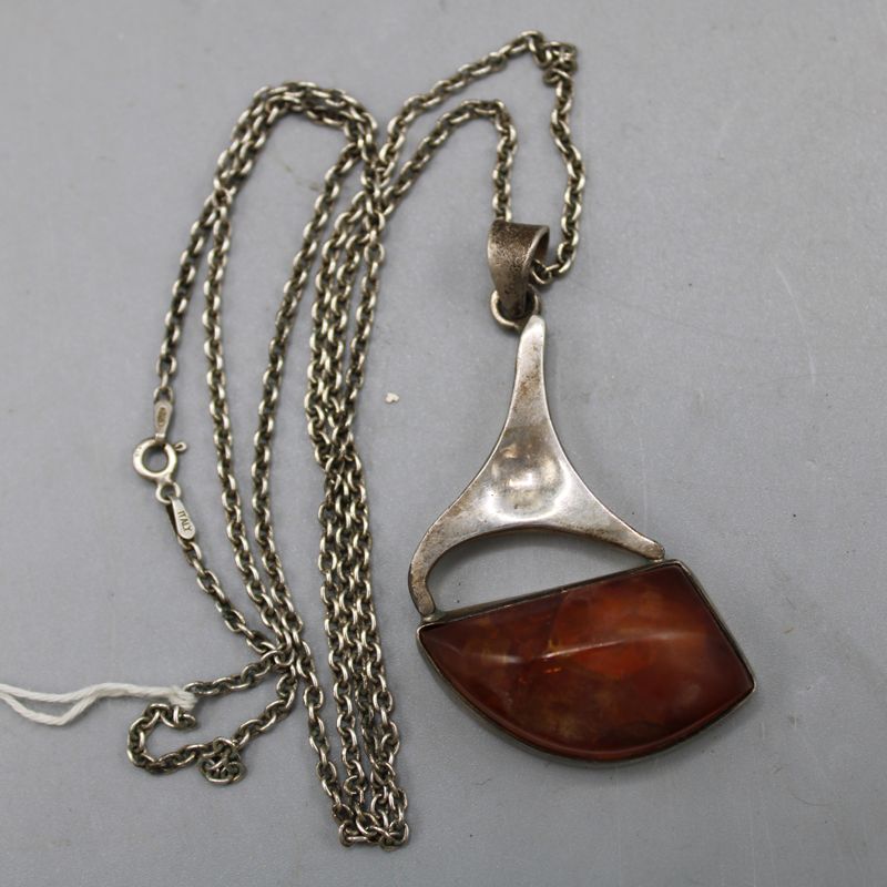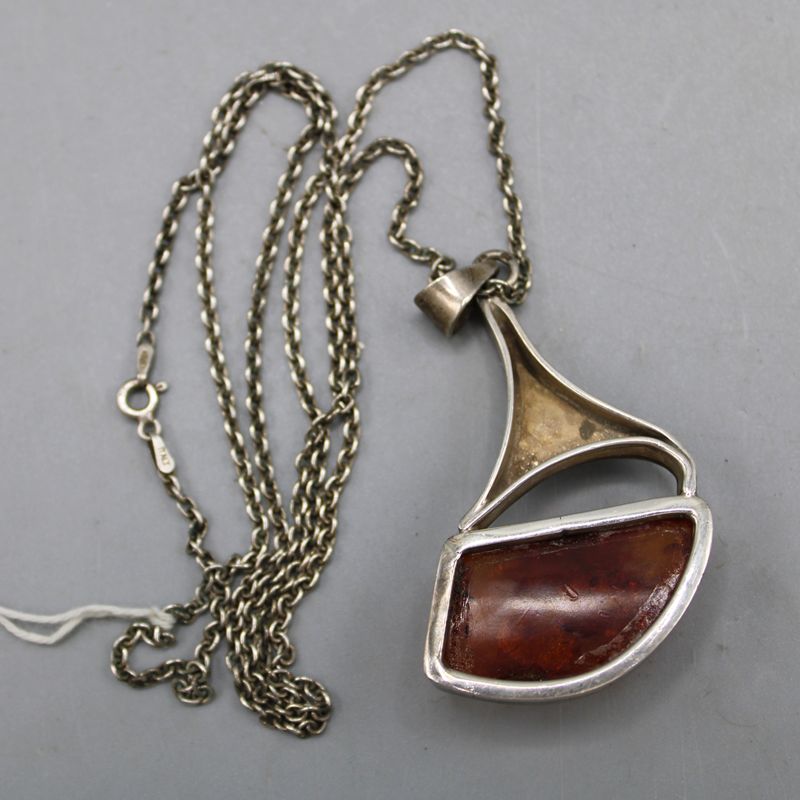 0066-Bernstein Anhänger mit Kette Silber 925