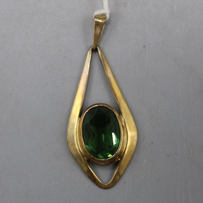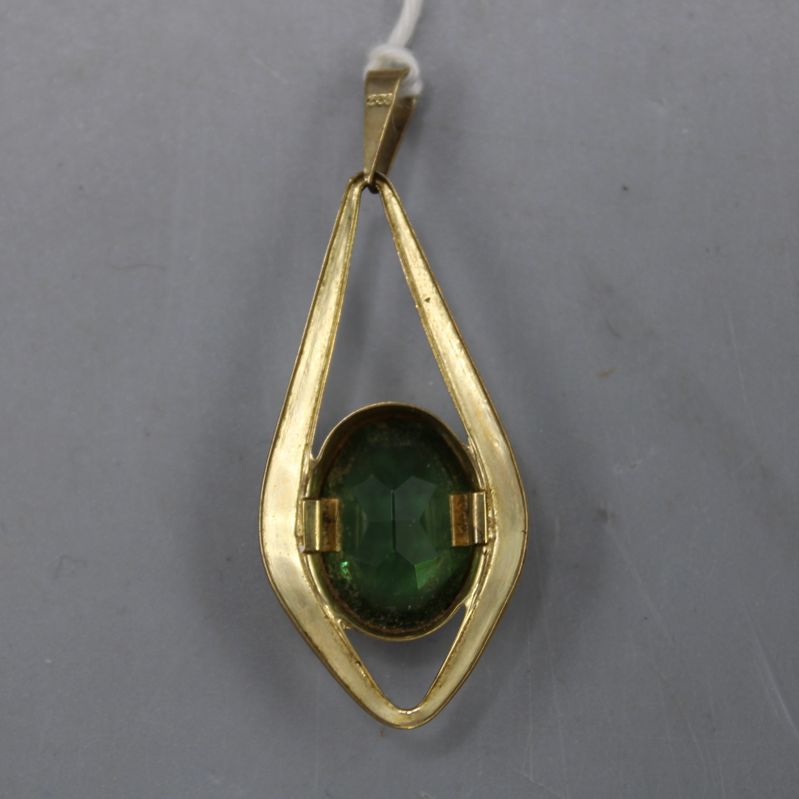 0067-Anhänger 333 Gold mit grünen Glasstein