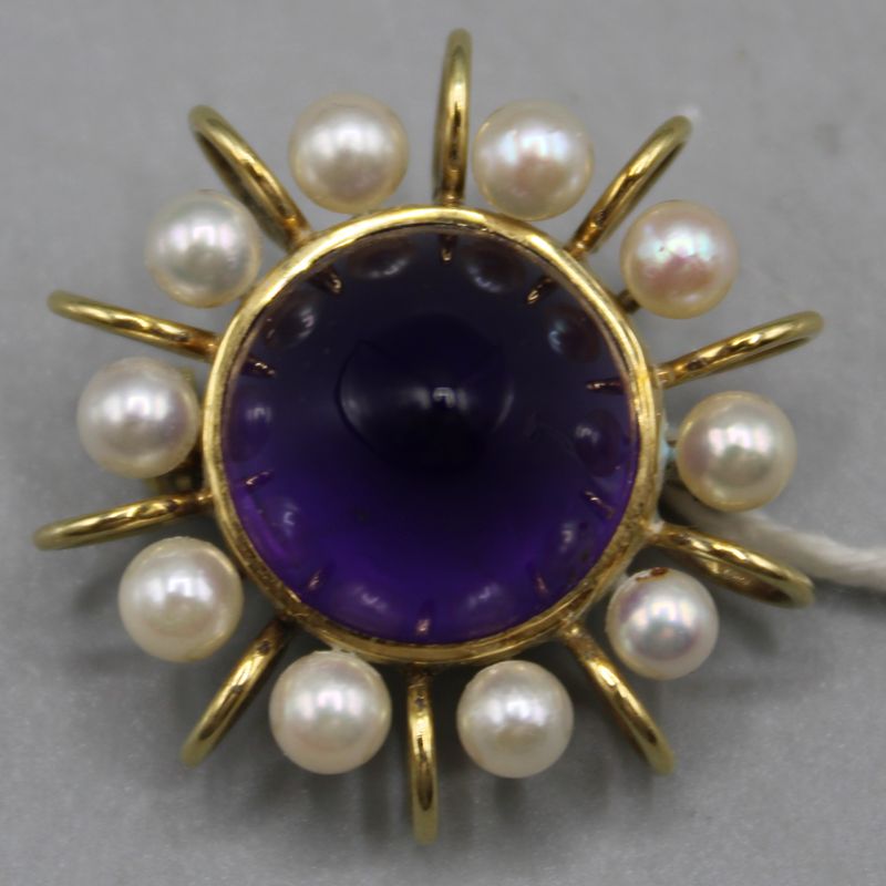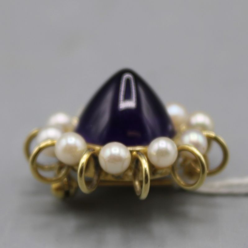 Amethyst Perlen Brosche 585 Gold