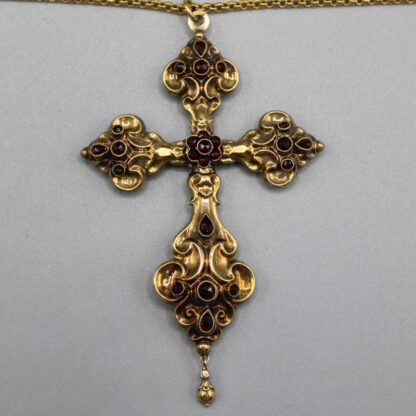 Granat Kreuz Anhänger 585 Gold mit Kette 19 Jh.