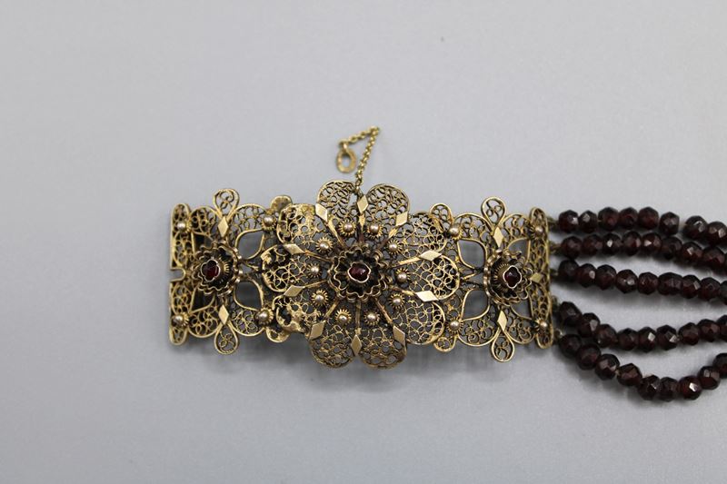Granat Kropfkette 5-reihig wohl 19 Jh.