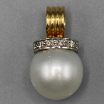 Perlen Ø 14,4 mm, 750 Gold Fassung mit kleinen Diamanten besetzt, 7,7 g