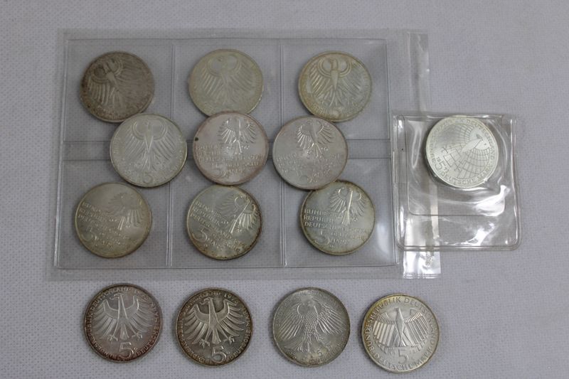 5 DM Gedenkmünzen Silbermünzen 14 St.