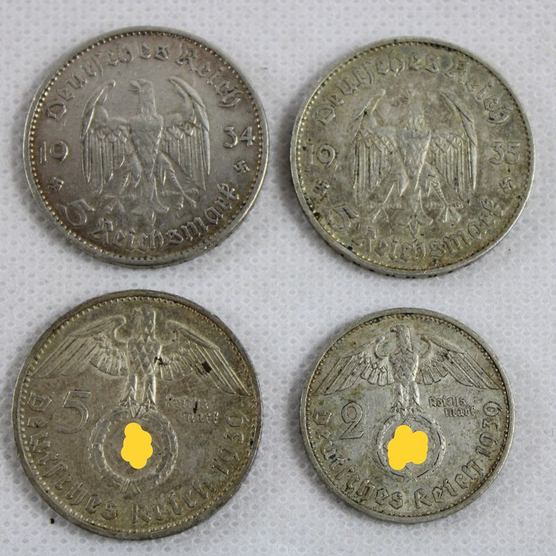 5 Reichsmark u. 2 Reichsmark Hindenburg/Garnisonkirche Silbermünzen