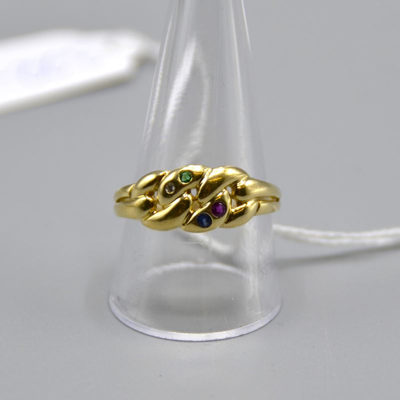 Goldring m. kleinen farbigen Edelsteinen 585 Gold, Ø Ring ca. 20 mm, 3,3 g