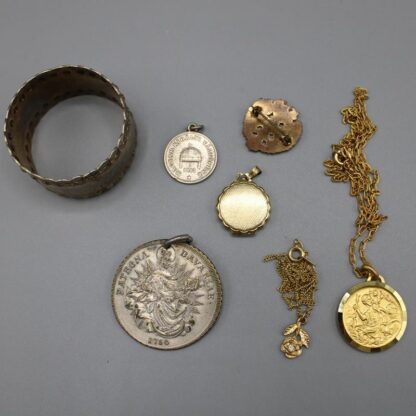 darunter ein emailliertes Schützenabzeichen, Madonnentaler Anhänger (Nachprägung) etc.